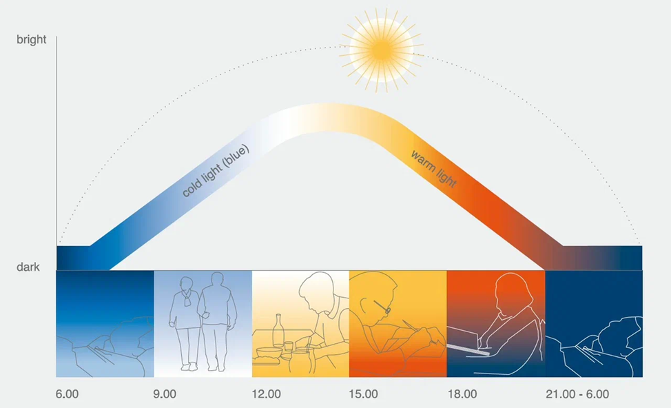 Свет влияет на нас гораздо сильнее, чем может показаться. Он регулирует наш внутренний биологический ритм — циркадные циклы, от которых зависит всё: как мы просыпаемся, насколько продуктивны в течение дня и как быстро засыпаем. Именно с этой задачей работает биодинамическое освещение — умная система, подстраивающаяся под человека и природный ход суток. Мы активно внедряем такие решения в интерьеры: от офисов до жилых пространств. Давайте разберёмся, что это такое и зачем это нужно. Что такое биодинамическое освещение? Это освещение, которое автоматически меняет цветовую температуру и яркость в течение дня, имитируя естественный световой цикл — от рассвета до заката. Утром — холодный и яркий свет (5000–6500К) помогает взбодриться и активизировать работу мозга. Днём — нейтральный белый свет (4000К) поддерживает концентрацию и продуктивность. Вечером — тёплый мягкий свет (2700–3000К) помогает расслабиться и готовит организм ко сну. Наш организм ориентируется на естественный свет. Искажени