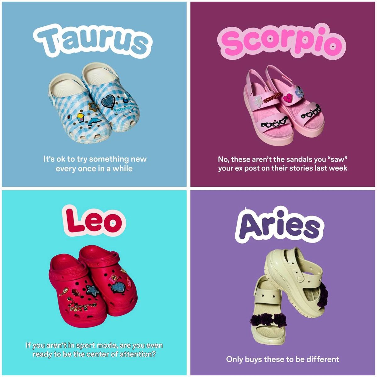 Опа, сммщик Crocs сделал подборку, какие клогги или тапки, нужно покупать, согласно своему знаку зодиака
