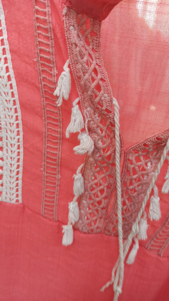 Представьте воздушное платье свободного кроя, будто сотканное из летнего ветерка. Его украшают изящная **белая вышивка**, деликатный **шнурок** и нежное **кружево** по подолу. Это — эксклюзив!