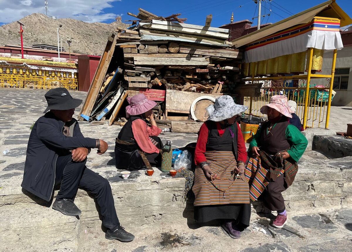 Монастырь Пелкор Чёде был сегодня единственным посещённым нами монастырём. Знаменит он своей многоярусной ступой и тем, что когда-то это был важнейших центр просвещения, где были представлены монастыри различных школ буддизма. Монастырь этот прекрасен. Древние статуи глядят на тебя со всех сторон. Особенно впечатляют протекторы. В одной из комнат их лица закрыты покрывалами – видимо, настолько они страшны. В качестве подношений им льют крепкий алкоголь, который тут же можно приобрести. Конечно, вот эта предприимчивость по добыче денег на нужды монастыря немного сбивает с возвышенного настроя. Видимо, надо работать над собой и не обращать внимание на такие вещи, но я пока прям отвлекаюсь, не могу удержаться от скепсиса, видя заваленные деньгами священные предметы. И вот эта тема с алкоголем для протекторов. Стоят пластиковые бутылочки с чем-то, пахнущим крепкой сивухой. Люди покупают такую бутылочку (для китайцев тут же табличка с куар кодом, чтобы онлайн оплачивать через вичат),