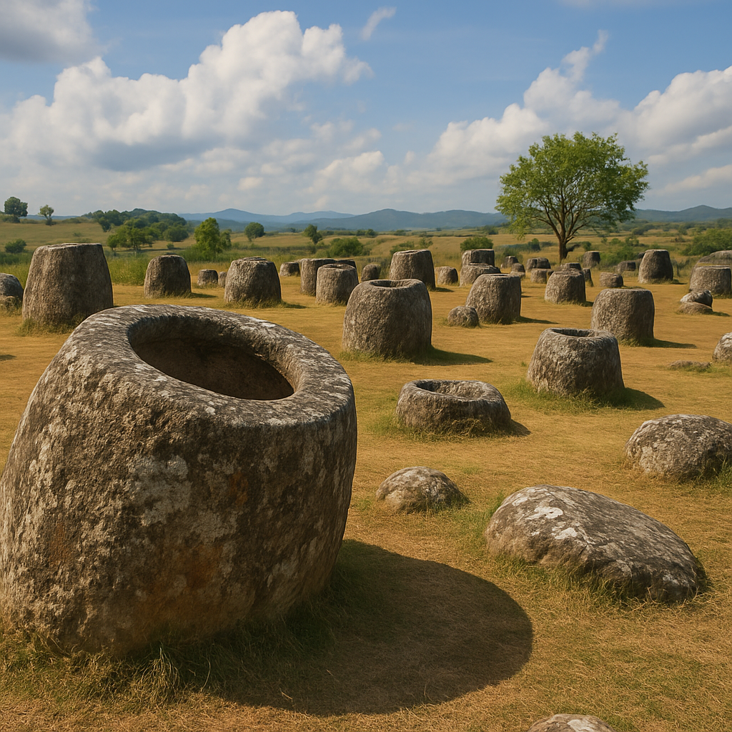 На высокогорных равнинах Лаоса, среди холмов и туманных джунглей, раскинулась одна из самых таинственных археологических зон Юго-Восточной Азии — Долина кувшинов. Здесь, будто после визита великанов, стоят тысячи гигантских каменных сосудов, возраст которых — более двух тысяч лет, а происхождение до сих пор окутано мифами и догадками. 📍 Где находится Долина кувшинов? Долина кувшинов находится на плато Сиангкхуанг в северном Лаосе. Основные скопления кувшинов сосредоточены вокруг города Пхонсаван, и археологи выделяют сотни площадок, на которых стоят эти каменные сосуды — от одиночных до целых «лесов» из них. Всего известно более 90 локаций с кувшинами, но большинство туристов посещают три наиболее доступные: Сайт 1, 2 и 3. 🪨 Что это за кувшины? Кувшины вырезаны из монолитных камней: песчаника, гранита и известняка. Некоторые весят более 10 тонн, достигая 3 метров в высоту, при этом ни один кувшин не похож на другой. Внутри они пустые, с гладкими стенками, и у части из н