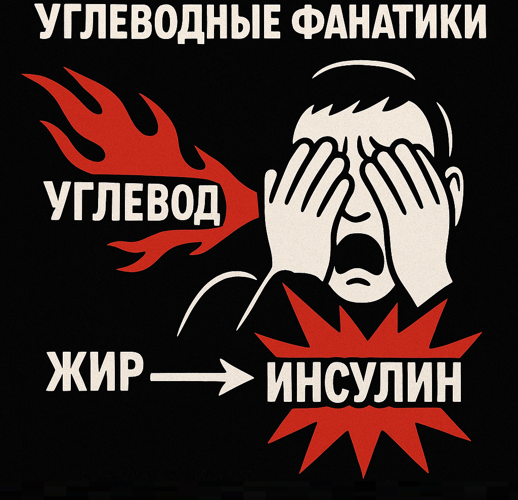 Научное сообщество, проводящее клинические исследования по кето, карнивору, LCHF (низкоуглеводное, высокожировое питание) и общему метаболическому здоровью, единогласно подтверждает: инсулиновая реакция на углеводы и жиры — это небо и земля. Игнорировать эти данные означает обманывать самого себя и, в конечном итоге, наносить вред своему здоровью.