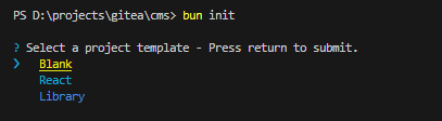 После выполнения команды bun спросит, что именно мы хотим инициализировать. В нашем случае мы выбираем Blank, как показано на скриншотах ниже: