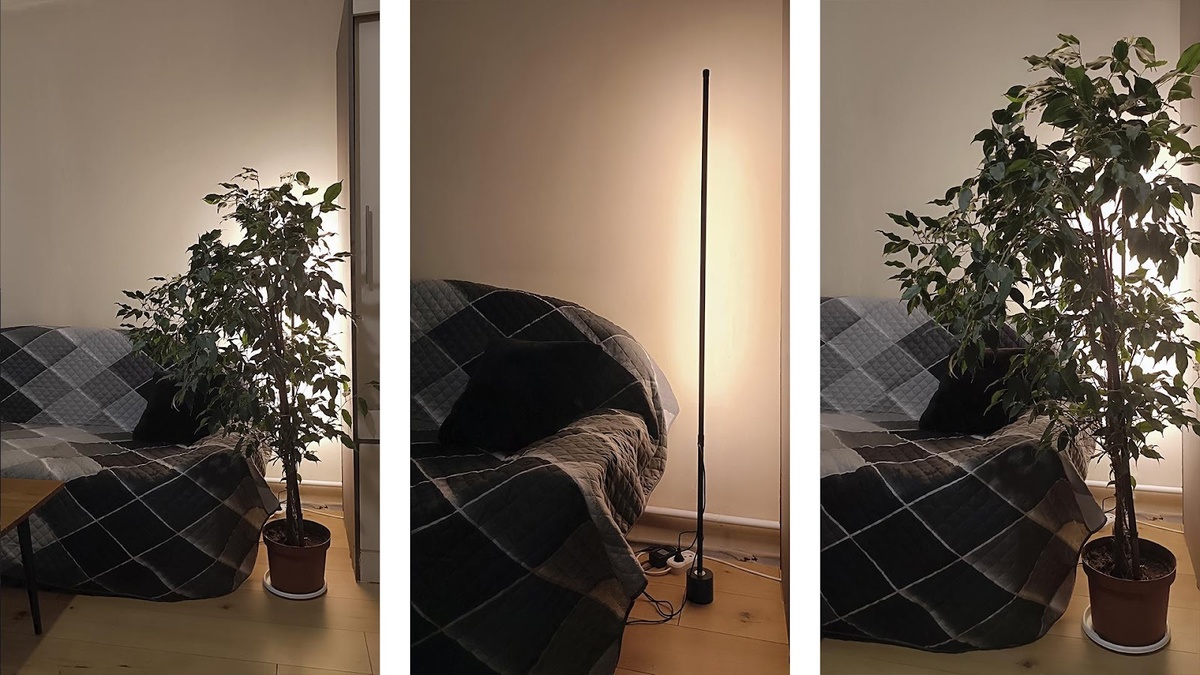 Ещё одна важная функция торшера — подсветка комнатных растений. У меня много растений, и я долго искала красивую и функциональную подсветку. Я не хотела громоздких профессиональных ламп, поэтому выбрала компактный и незаметный торшер.