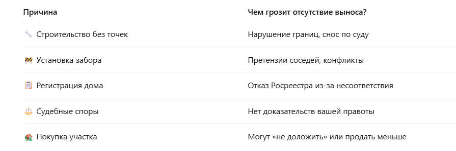 Автор: Геодезист ООО «ГеоРусИзыскания» Кулешов Юрий Многие собственники земли считают, что раз участок стоит в кадастре, значит, всё в порядке. Но когда дело доходит до установки забора, строительства дома или судебных споров с соседями, внезапно выясняется: границы «на бумаге» не совпадают с тем, что в натуре. Чтобы избежать проблем, нужно провести процедуру под названием «вынос границ земельного участка в натуру». В этой статье разберёмся, что это такое, зачем необходимо и сколько стоит в 2025 году по Москве и области. Вынос границ участка — это геодезическая процедура, в ходе которой инженер-геодезист устанавливает на местности точки поворота границ в соответствии с координатами, зарегистрированными в ЕГРН. Эти точки обозначаются специальными знаками (колышками, маяками, призмами). 📍 Это ключевой этап перед: ✅ Вынос границ — это способ видеть участок так, как он зарегистрирован официально. 📄 При необходимости также готовится схема для суда или архитектуры. 💬 Точную цену определя