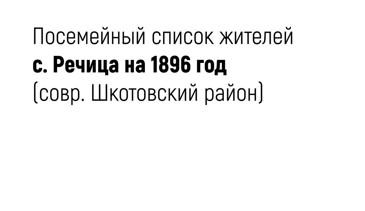Ниже привожу посемейный список жителей села Речица на 1896 год (современный Шкотовский район) с указанием ФИО главы семьи и его возраста.