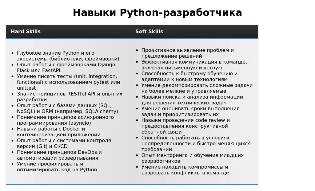 - Python-разработчик (Web): Если разрабатываете веб-приложения с использованием фреймворков, таких как Django или Flask.
