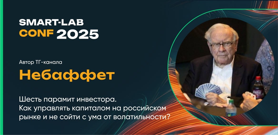 Какие секреты скрывает спикер, пожелавший остаться инкогнито? В нашем расписании этот популярный автор телеграм-канала так и обозначен — по названию своего проекта. Мы с трудом уговорили его на первое публичное выступление, а уж о раскрытии имени и речи не шло! Совсем скоро на Smart-Lab Conf выступит НЕБАФФЕТ — частный управляющий капиталом с активами под управлением полмиллиарда рублей и автор аналитического сервиса Асимметричные инвестиции! 🟡 Главная особенность стратегии Небаффетта — участие только в сделках с асимметричным профилем доходности к риску; 🟡 Благодаря этому максимальная просадка за время ведения публичного портфеля составила всего 5.67% при доходности за 2024 год свыше 100%. Тема интересует не меньше, чем личность блогера: «Шесть парамит инвестора. Как управлять капиталом на российском рынке и не сойти с ума от волатильности?» Небаффетт считает, что главный навык инвестора — умение принимать решения. И именно шести правилам принятия решений на рынке будет посвящ