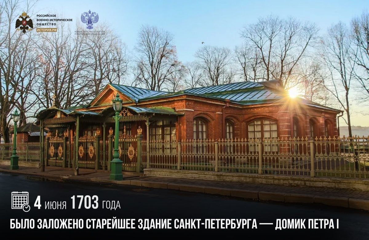 4 июня 1703 года было заложено старейшее здание Санкт-Петербурга — Домик Петра I