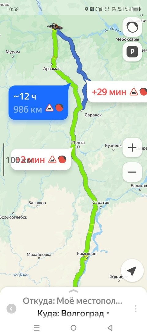 ✏️ Дальняк.рф™: Всем привет. На днях стартую из Нижнего в Волгоград. Навигатор тащит вот таким образом. Вроде все хорошо, но есть вопрос.. Кто ездил этим маршрутом, подскажите, плизз, что там с дорогами? Ночевка в планы не входит😹 Заранее спасибо 🤝 Автор: Мурат Саламов