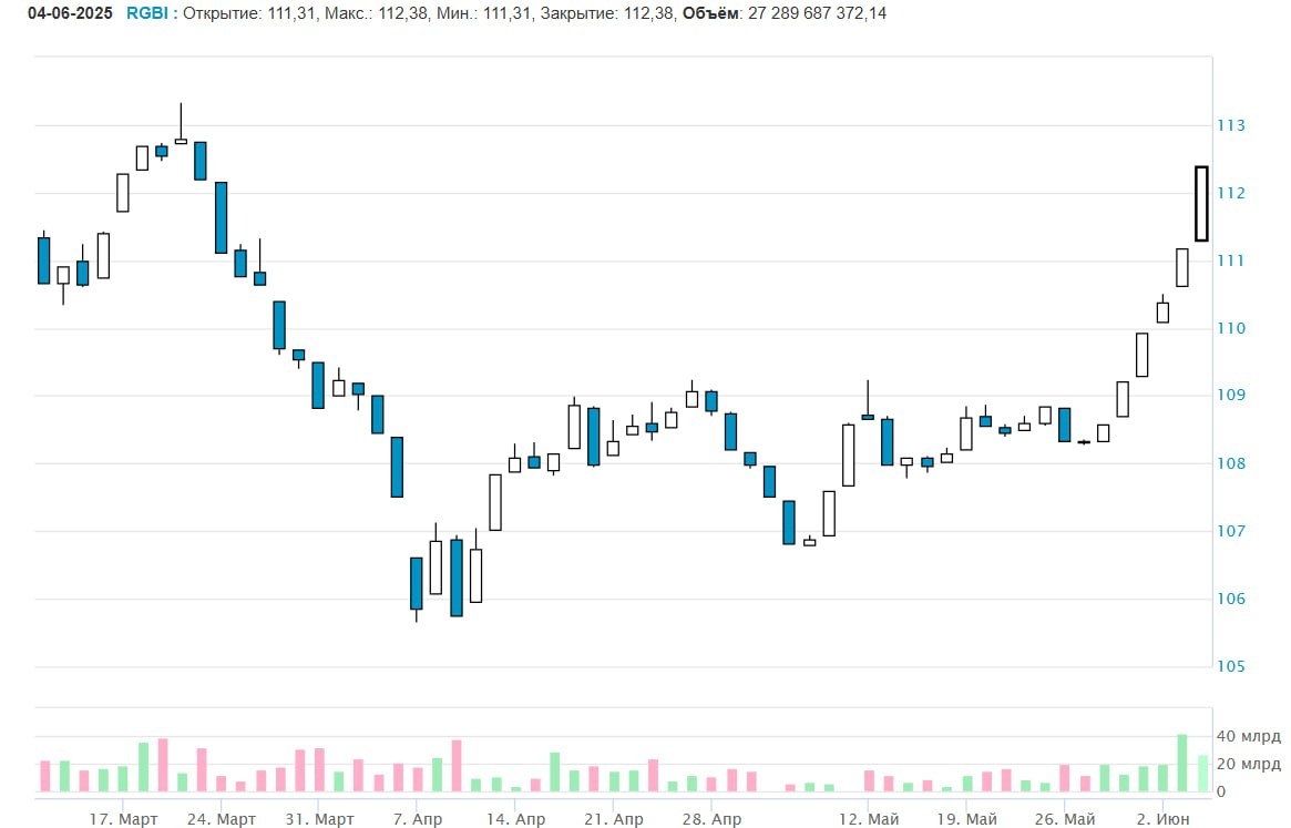 Динамика индекса МосБиржи гособлигаций RGBI в преддверии заседания ЦБ 6 июня.