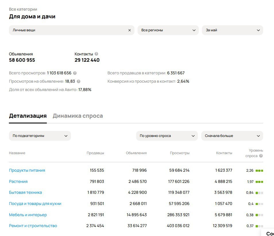 Внутри категории лидеры, по прежнему, еда и растения. Канал-руководство Продажи на Авито с нуля