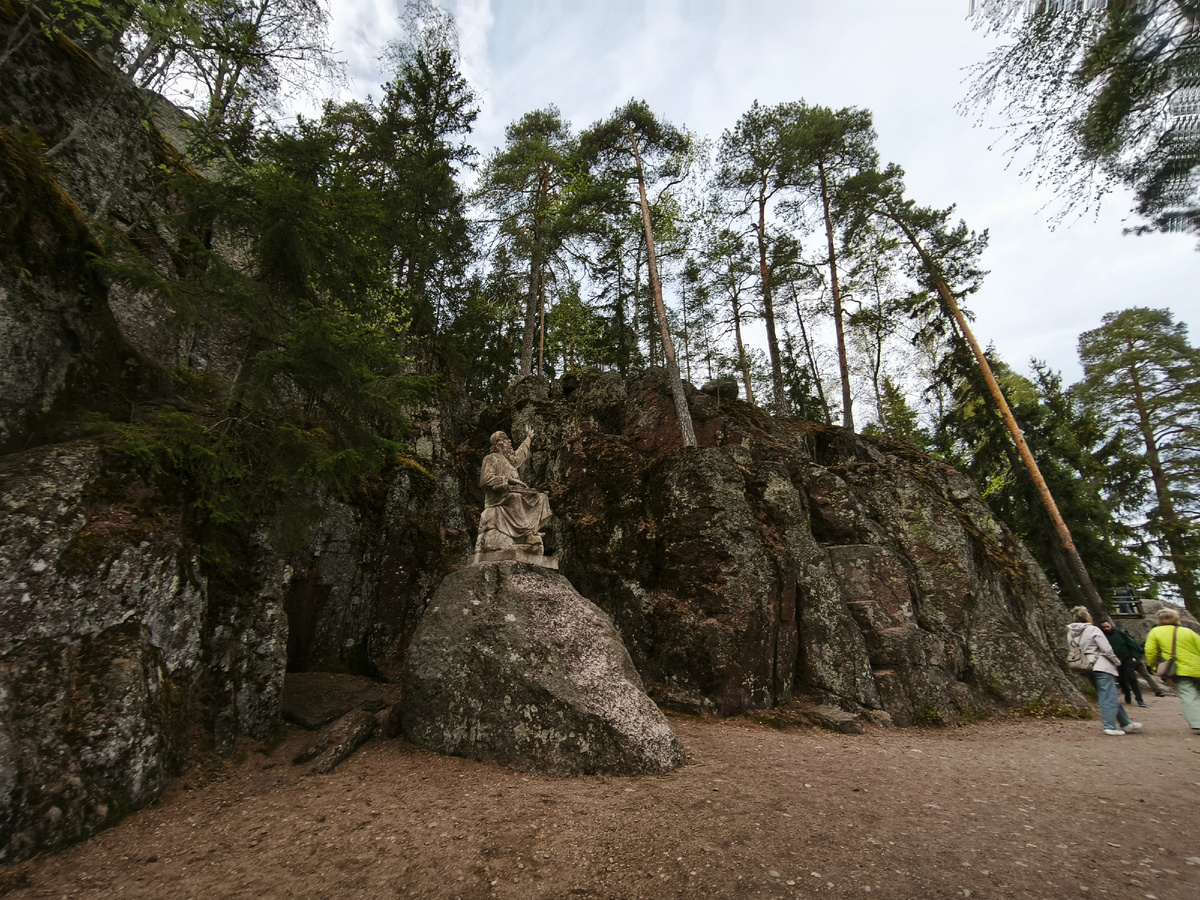 Впервые знаменитый рунопевец появился в ущелье в 1831 году. Его автором стал датский скульптор Готтхельф Борупю Гипсовый Вяйнямёйнен Борупа был установлен за четыре года до выхода в свет первого сборника Калевалы. Он был одет, как античный герой, кв короткую римскую тунику, а в руке держал инструмент, похожий на кифару: ведь никто точно не знал, как должен выглядеть герой северных сказаний.