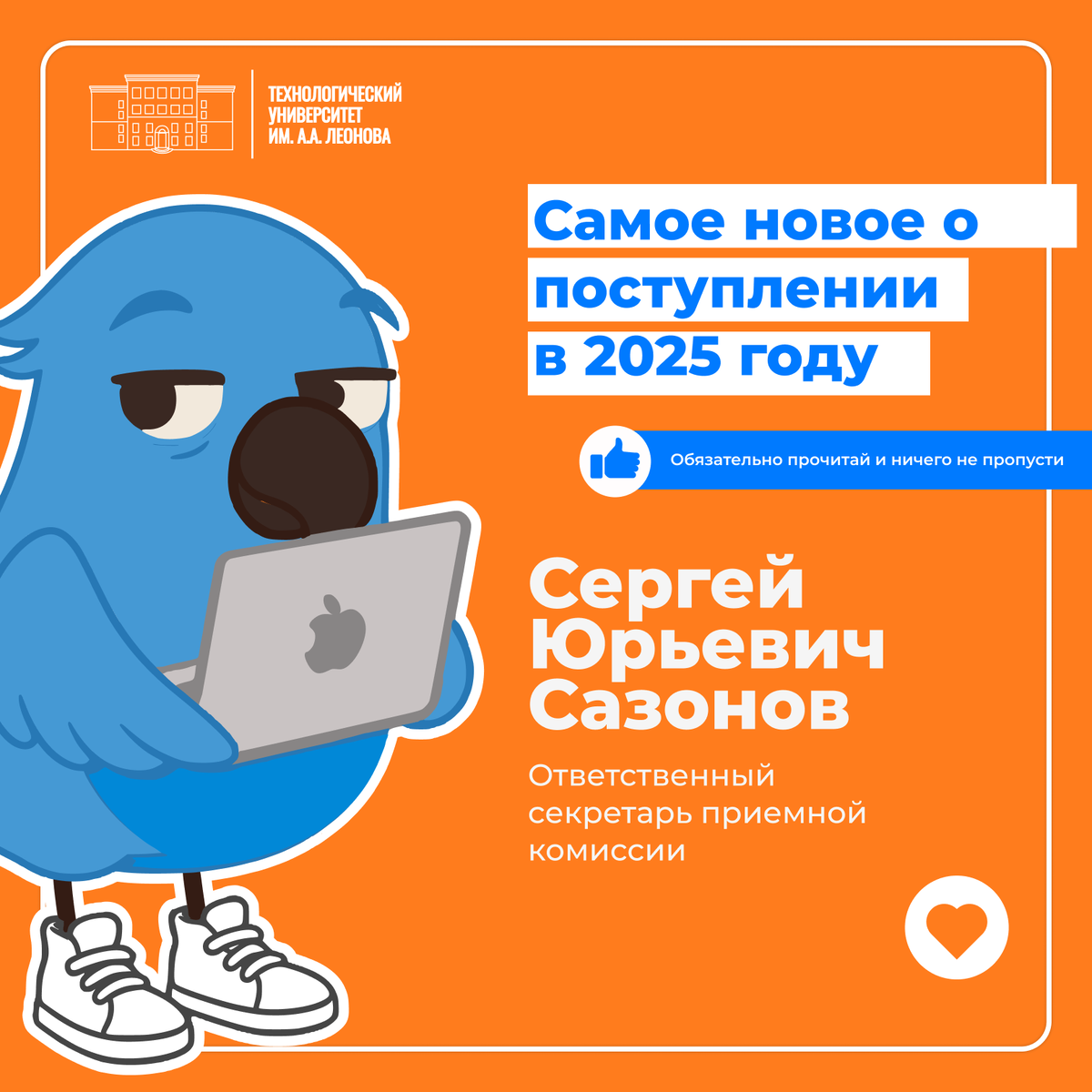 Выпускники со всей страны совсем скоро столкнутся со сложной задачей – выбором высшего учебного заведения. Запуск приемной кампании-2025 пройдет 20 июня. Пообщались с ответственным секретарем Приемной комиссии Технологического университета им. А.А. Леонова Сергеем Юрьевичем Сазоновым и узнали все нюансы.