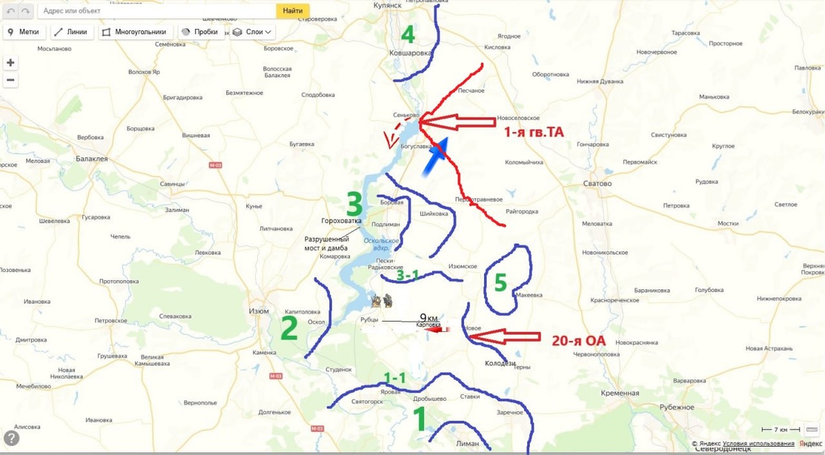 В ответ на пост Изюмское направление. Идет расширение клина наступления. ВС РФ обходят блокированную Зеленую Долину по гребню в направлении поселка Шандриголово. Это серьезный оборонительный узел на участке. Дочищают противника в Новомихайловке и расширяют клин наступления на север в направлении Ольговки и Петровское (Грековка укр. с 2016) Ведут бои за Карповку от которой до важнейшей коммуникации Рубцы-Лозовое порядка 9 километров. Лишившись снабжения через нее, большая группировка ВСУ, прижатая к реке Оскол, не имея мостов, может уже сейчас начинать мастерить плоты по старым дедовским чертежам (см.фото). схемы и карты