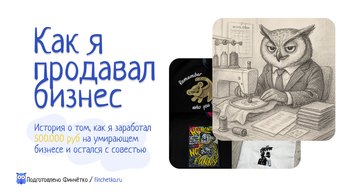 Сижу я в квартире, смотрю на свою вышивальную машинку Brother, которая в очередной раз сломалась посреди заказа. Звук какой-то странный издает, нитка рвется каждые пять минут, а я уже третий час пытаюсь разобраться, что с ней не так. В голове крутится одна мысль: «Опять ремонт, опять деньги, опять время». За последние полгода я потратил на починку этой машины тыщ 50. А она все равно барахлит. Тут мне приходит сообщение от клиента: «Руслан, когда будет готов заказ? Уже неделя прошла». И я понимаю — все, хватит. На следующий день звоню своему другу Дмитрию. Он уже несколько лет занимается покупкой и продажей малого бизнеса. Рассказываю ему свою историю. — Руслан, а ты вообще, что продаешь? — спрашивает он. — Как что? Бизнес по вышивке на одежде. — Нет, думай — Геморрой? Дима начинает объяснять: — Смотри, твоя машинка стоит на рынке 200 тысяч новая. Твоя — б/у, с проблемами, максимум 80-100 тысяч. Но у тебя есть база из 150 клиентов, которые уже знают качество твоей работы. У тебя есть 3