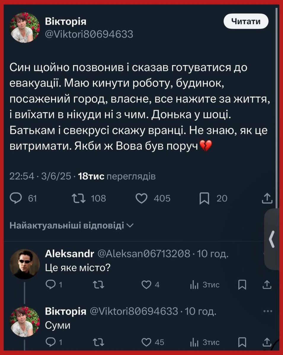 ВСУшники предупреждают своих родных в Сумах, чтобы те эвакуировались