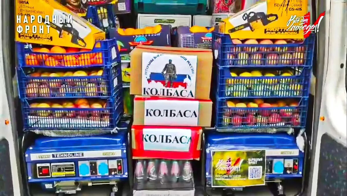 В числе переданных на передовую средств — бензопилы, генератор, продукты питания, в числе которых разнообразные фрукты, колбасы и многие другие товары. Вся помощь была приобретена за счёт личных средств благотворителя.