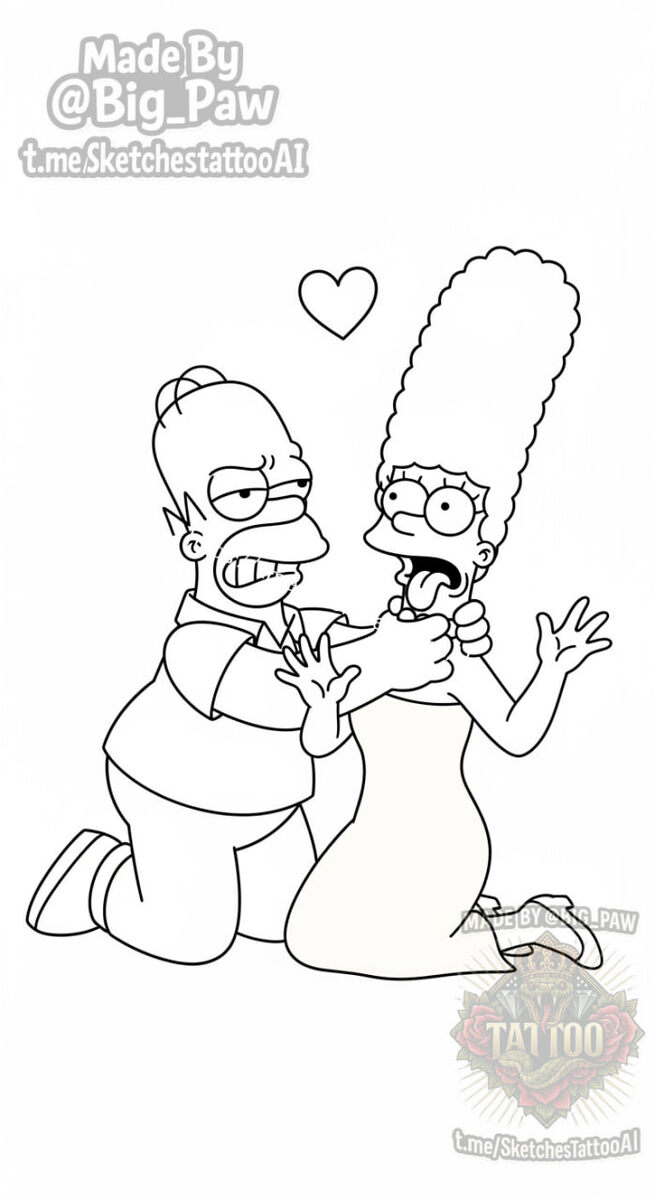 #2484 Подборка по запросу подписчика - Можно такое же, только вместо Барта и Лизы Гомер и Мардж? 🧠 SYNTX 💳 Донат 😎 НейроБро 😎 Эскизы без вотера 💀 Эскизы от нейросети #симпсооны #контур #мультфильм #эскизы #тату #татуировки