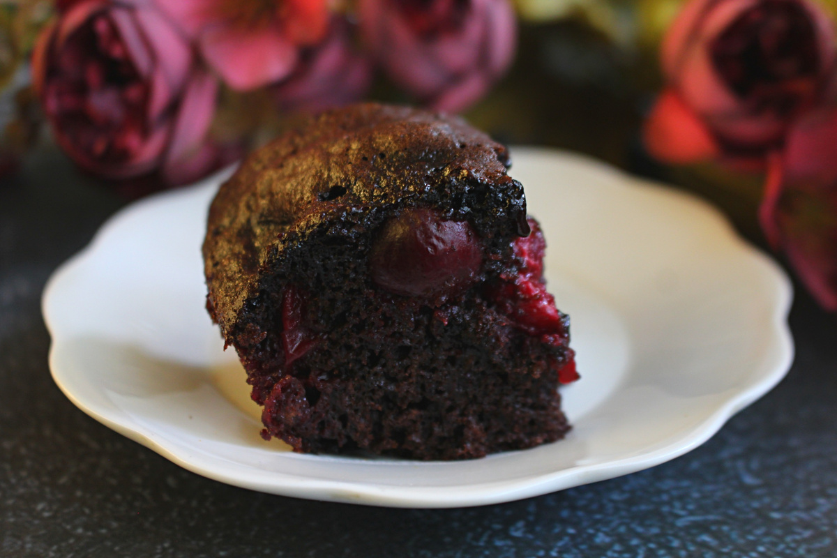 Этот пирог из разряда - "если Шарлотка надоела". Готовится такой пирог из простых продуктов, очень быстро, а выпечка получается просто отличная! Пирог мягкий, нежный, очень шоколадный, с вишневой кислинкой. Вишню для приготовления выбирайте крупную и сладкую. Я использую вишню сорта Шпанка, она размером с хорошую черешню. Если под рукой нет сахарной пудры, то используйте такое же количество сахара. Но тогда тесто придется взбивать дольше, чтобы сахар растворился. Яйцо куриное - 3 шт. Пудра сахарная - 200 г. Разрыхлитель - 1 ч.л. Какао-порошок - 3 ст.л. Соль - щепотка Масло растительное - 30 мл. Вишня - 300 г. Мука - 130 г. Яйца вбиваем в чашку, добавим соль и сахарную пудру. Перемешиваем. Добавим в чашку какао-порошок, разрыхлитель, вливаем масло и перемешиваем. Добавим в чашку муку и перемешиваем. Вишню почистим, выложим в форму для выпечки. Заливаем тесто в форму. Выпекаем пирог в духовке при температуре 180С. Выпекаем пирог до средней упругости, можно даже оставить серединку пирога