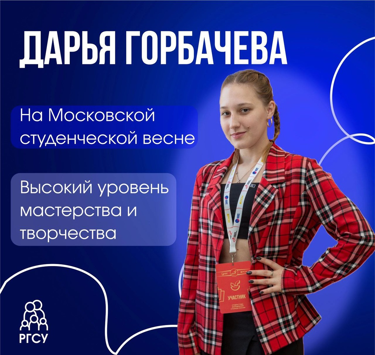 🎉 Поздравляем обучающуюся Колледжа РГСУ Дарью Горбачеву с заслуженными наградами на Московской студенческой весне