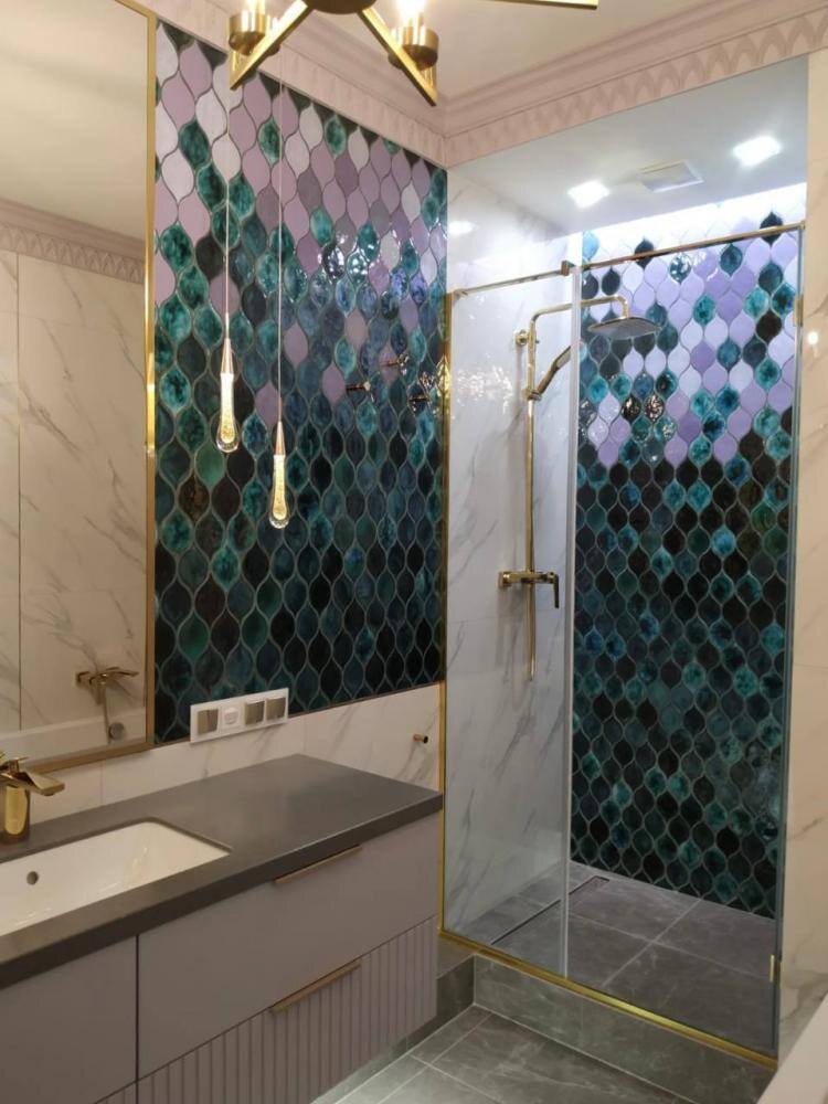 Дизайнер Екатерина Богданова, с которой мы ранее сотрудничали (изготавливали для ресторана в Сочи плитку), показала нам фотографию интерьера с нашей керамикой. Екатерине понравилась расцветка, цветопроба которой представлена на фото, но только реализовать ее решили на коллекции «Рыбья чешуя». Изящная интерпретация цветовой гаммы, предложенная Екатериной, обещает дать интересный виток популярной коллекции «Рыбья чешуя». Представьте себе игру красок на мерцающей поверхности плитки, в которой каждый элемент, словно драгоценная жемчужина, будет отражать богатство оттенков и создавать неповторимый визуальный эффект. Творческий процесс всегда непредсказуем своим результатом, но гарантировано одно – это точно будет уникально и красиво! Тел.: WhatsApp/Telegram: +7 926 316-69-87