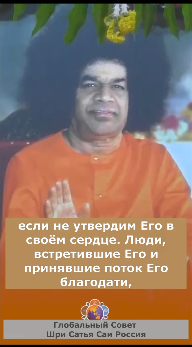 108 имён Шри Сатья Саи Бабы К 100-летию Бхагавана мы продолжаем воспевать 108 имён Шри Сатья Саи Бабы! 55. Ом Шрӣ Сāи Ананта Нута Картрине Намаха «Ананта» означает «бесконечный». «Нута» означает «восхваление» или «восхваляемый». В этом обращении упоминается «Картā, или Творец, бесконечно восхваляемый». Поскольку Бхагаван Шри Сатья Саи Баба непрерывно занят исцелением, спасением, защитой и утешением, благодарные гимны от тех, кто получает Его милость, – «Ананта», бесконечны. «Картā» также означает «Тот, кто творит»; «Тот, кто делает, создаёт, совершает»; и поэтому данное имя означает Брахму, Вишну и Шиву. Поскольку Баба – это все трое, Сам Даттатрейя, имя Картā поистине принадлежит Ему. Баба – это Картā, притягивающий бесконечную хвалу во всех странах и на всех языках, от молодых и пожилых, простых и искушённых; слова не в силах описать Его любовь и Его могущество. Ни один живописец не может в полной мере передать Его красоту и славу, но всё же они продолжают попытки,