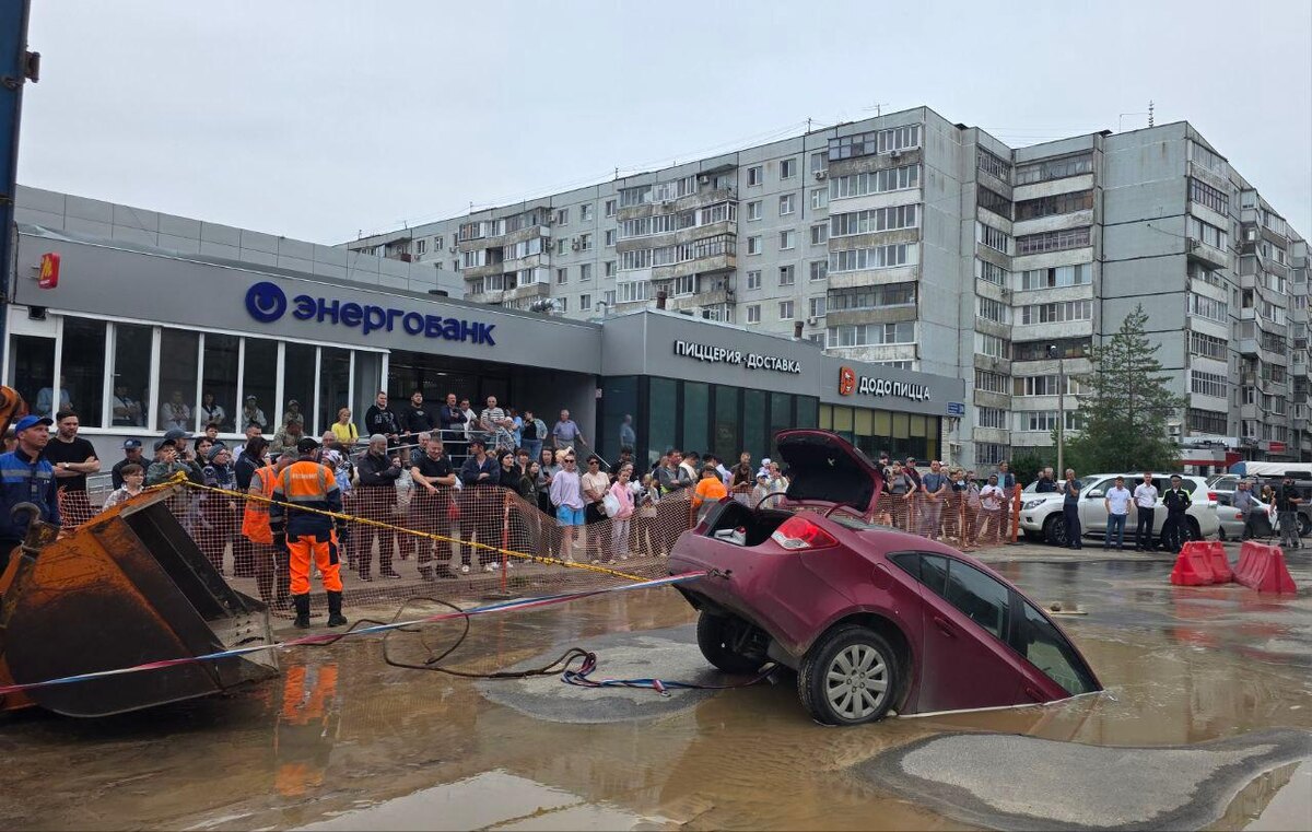 В Казани машина провалилась под асфальт из-за прорыва трубы и обвала грунта