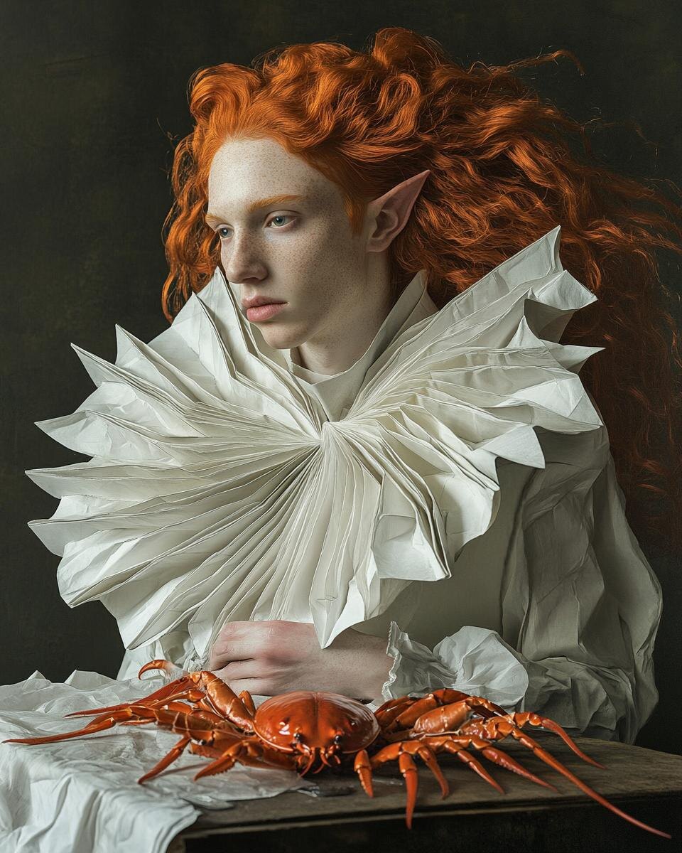 🔠🔠🔠🔠 Обзор SREF стилей SREF коды, которые при добавлении в конце промта, позволят Вам повторить стиль генерации, подробнее ТУТ 🔣 Большое изображение - базовый промт без SREF 1️⃣ --sref 1225170385 2️⃣ --sref 3419020242 3️⃣ --sref 608 4️⃣ --sref 14507978 5️⃣ --sref 97 An avant-garde portrait of an elf with long red hair, wearing white with a large origami paper fan collar around his neck. He is looking at a crustaceans on a table. This award-winning studio portrait exemplifies an artful, conceptual and graphic design approach to artwork. Wavy patterns inspired by the works of Gordon Walters, featuring a digital art style, symmetrical composition. --ar 4:5 --sref (КОД) Если понравилось, ставьте 👍 #midjourney #flux #dalle #gpt #midjo #art #midjoart #luma #hailuo #minmax #kling #video #ai #faceswap 🤖 Попробуйте сами с Midjourney Bot
