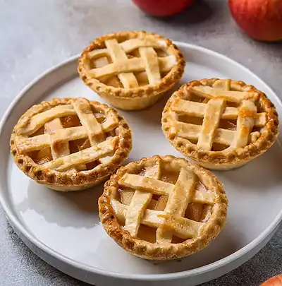 Мини-пирог с яблоками - это забавный и очаровательный вариант классического десерта, в котором все знакомые вкусы сочетаются в индивидуальной порционной подаче. Эти маленькие пироги станут отличным угощением на любом празднике и порадуют ваших гостей. Вот рецепт яблочного пирога. Продукты необходимые для приготовления: 5 средних яблок сорта очищенных и нарезанных кубиками четверть стакана светло-коричневого сахара четверть стакана сахара четверть стакана пшеничной муки 1 ч. л. молотой корицы 1 ст. л. лимонного сока Вы можете использовать 2 готовых коржа для пирога общим весом 400 гдля 2 пирогов или приготовить тесто для пирога по своему рецепту. Время приготовления: 1 час. Все нужные продукты по списку мы собрали. теперь начинаем готовить домашние мини-пироги с яблоками. 1. Разогрейте духовку до 220 градусов. Слегка смажьте форму для кексрв антипригарным кулинарным спреем. 2. В большой миске смешайте нарезанные кубиками яблоки, коричневый сахар, обычный сахар, муку, корицу и лимонный с