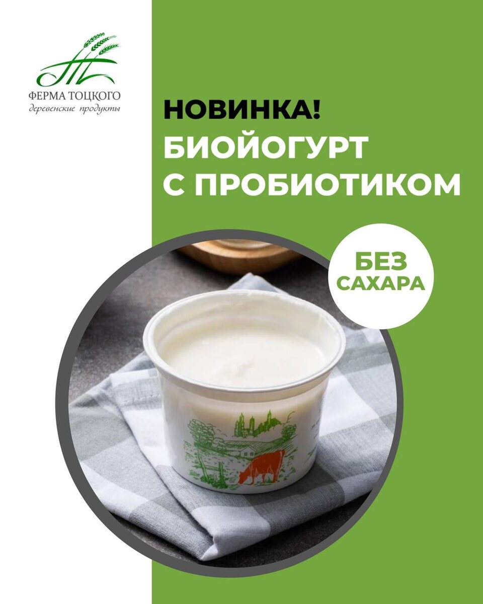 Встречайте новинку🔥 БИОЙОГУРТ С ПРОБИОТИКОМ БЕЗ САХАРА ✔️МДЖ 4,0% Состав: молоко цельное, молоко обезжиренное, йогуртная закваска, пробитик бифидобактерий Bifidum Пробиотики способствуют восстановлению микрофлоры кишечника, улучшают пищеварение и укрепляют иммунную систему. А также, биойогурт с пробиотиками обеспечивает организм белками, кальцием и другими важными витаминами и минералами. С заботой о Вас, Ферма Тоцкого💚 Адреса магазинов: ✔️ ТЦ "Космос-Сити", пр. Строителей, 45а ✔️ ЖК "Фаворит" ул. Мира, 44а ✔️Магазин «Гидростроевский», ул. Экспериментальная, 7