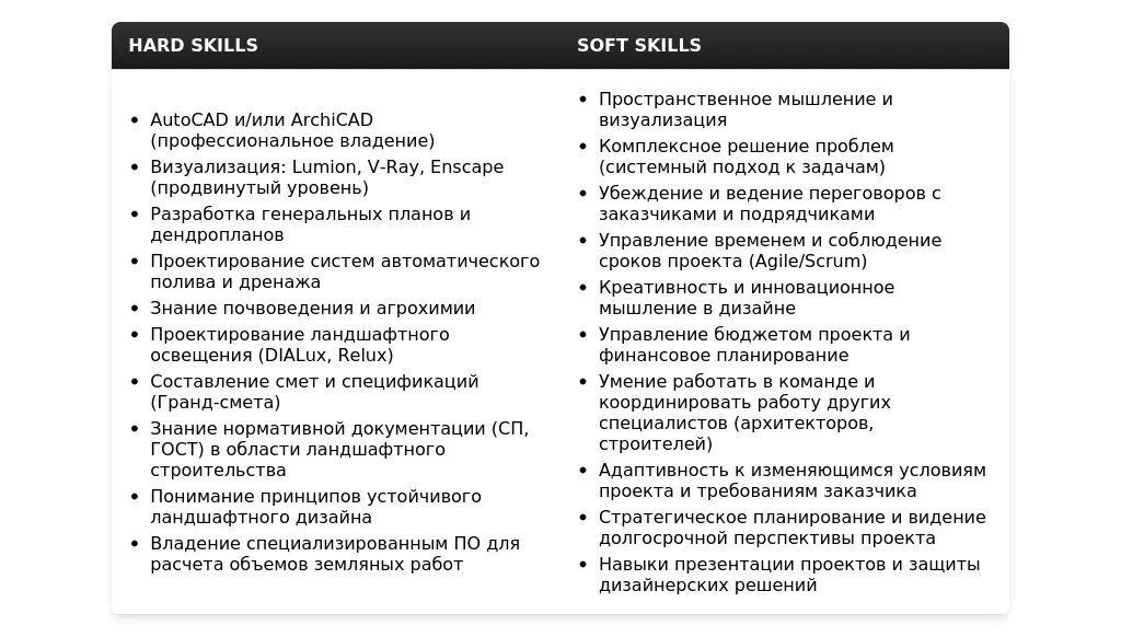 - Знание теории ландшафтного дизайна.
