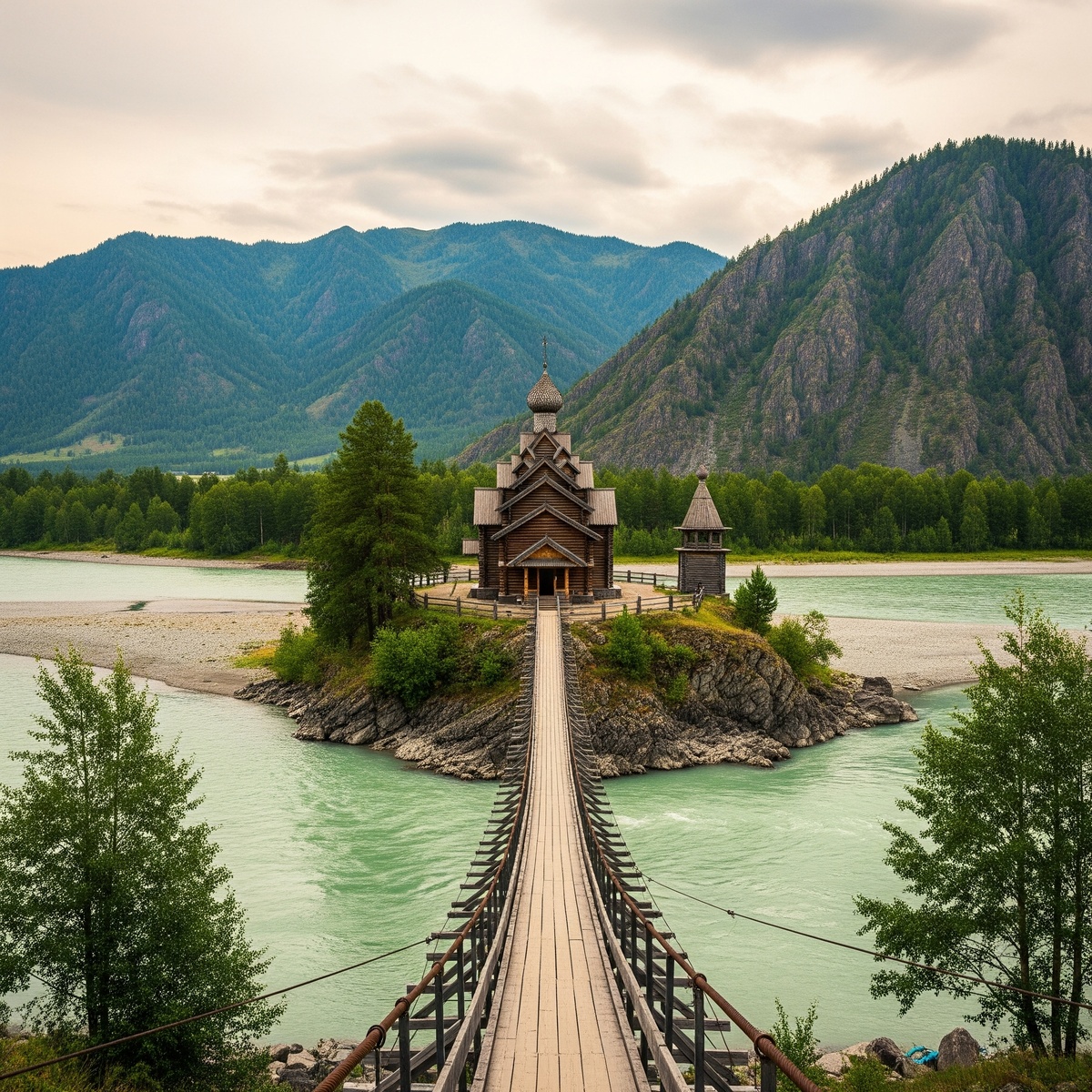Этот уникальный мост был построен в 2000 году московским художником Виктором Николаевичем Павловым и подарен Барнаульско-Алтайской епархии. Несмотря на кажущуюся хрупкость, мост абсолютно надежен, но для безопасности одновременно на нем может находиться не более восьми человек. Преодоление этого раскачивающегося пути – не просто прогулка, это символическое испытание, которое, кажется, готовит вас к духовному погружению и уединению, ведь иного пути на остров нет. Это момент, когда вы оставляете мирскую суету позади.