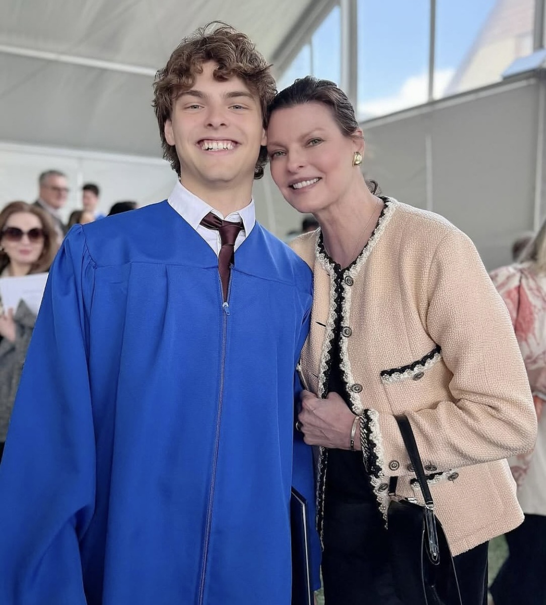 Знаменитая топ-модель девяностых опубликовала фоторепортаж с торжественного окончания школы сыном Джеймсом Огюстом. На торжестве появилась не только знаменитая мама, но и отец , Франсуа-Анри Пино. И это не всё. Была и нынешняя жена Пино, актриса Сальма Хайек, с которой встречался Франсуа, когда Линда носила под сердцем их сына. Тем не менее, все осталось в прошлом. Семья живет дружно, что может только радовать! Про их отношения я писала здесь. А в день окончания школы отец даже подарил отличную сигару сыну. Как говорится, спорный подарок. Но у богатых свои привычки.