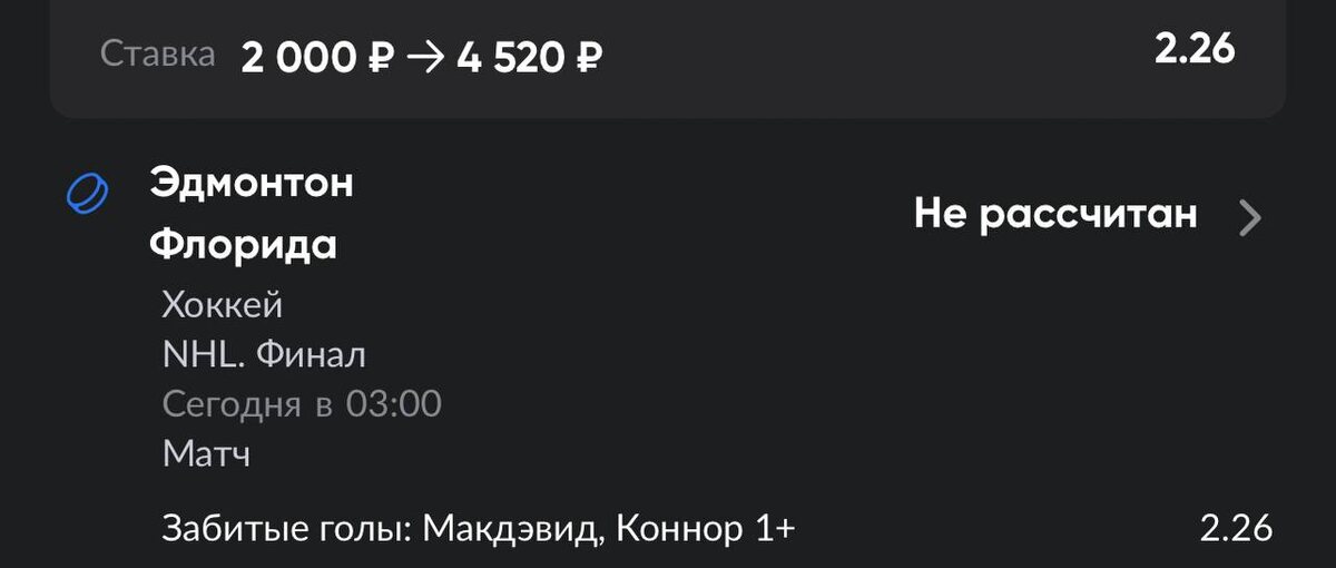 Но здесь поставлю на гол одного из лучших игроков современности Коннора МакДэвида с отличным коэффициентом 2.26 в BetBoom.