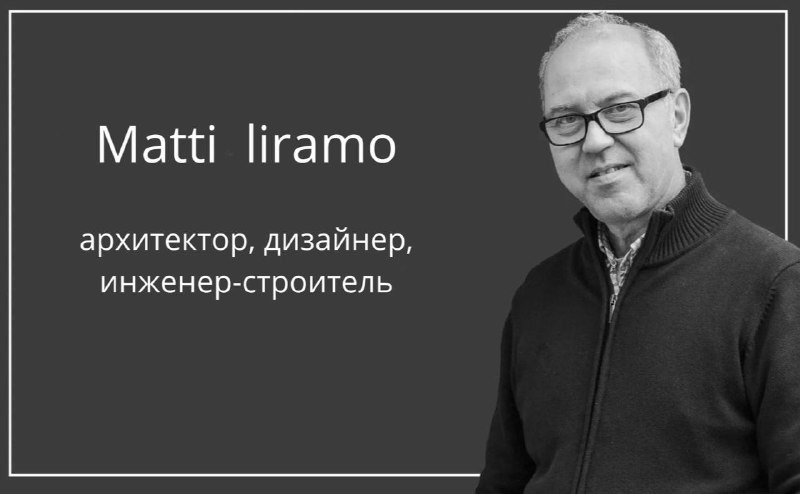 Именитый маэстро Matti Iiramo Архитектор с уникальным природным даром и фундаментальным образованием Мatti Iiramo, окончивший престижный Королевский Архитектурный Университет в Стокгольме и инженерный факультет в Финляндии, является первопроходцем в малоэтажном проектировании. За его плечами — более чем 30-летний опыт: создание свыше 1000 проектов, среди которых более 500 значимы на европейском уровне, начиная от генпланов, домов класса люкс и спортивных комплексов, заканчивая гостиничными комплексами. Своими неординарными проектами он создает самые комфортные условия для жизни человека на земле. Матти является новатором в подходе к жизни. Он разрабатывает лучшие инновационные модели проживания, многие из них были неоднократно опубликованы в известных журналах. Революционные проекты Matti Iiramo: Gusar, Raiz, Jennifer, Caprise, Fjord, Riviera, Amigo, Amber, Manzherock — и это лишь малая часть. Практически весь наш уникальный финский поселок на Рублевке состоит из проектов Matti (другие