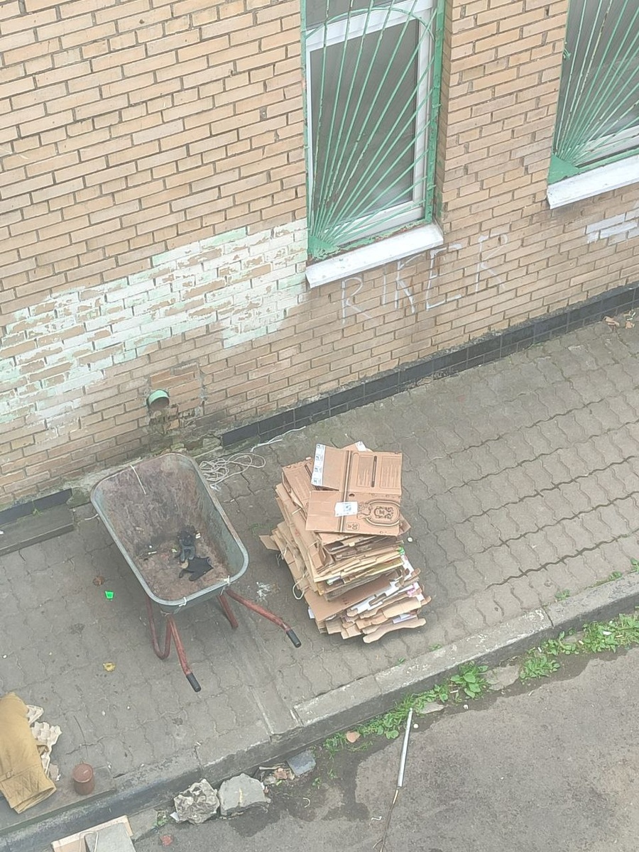 Опять ежедневный сбор мукулатуры! Микрорайон Павлино д. 15 . Сколько ещё жители дома должны лицезреть это в свои окна? Если УК не имеет отношения к данной территории, так обяжите собственника - прекратить ежедневно складировать картон!