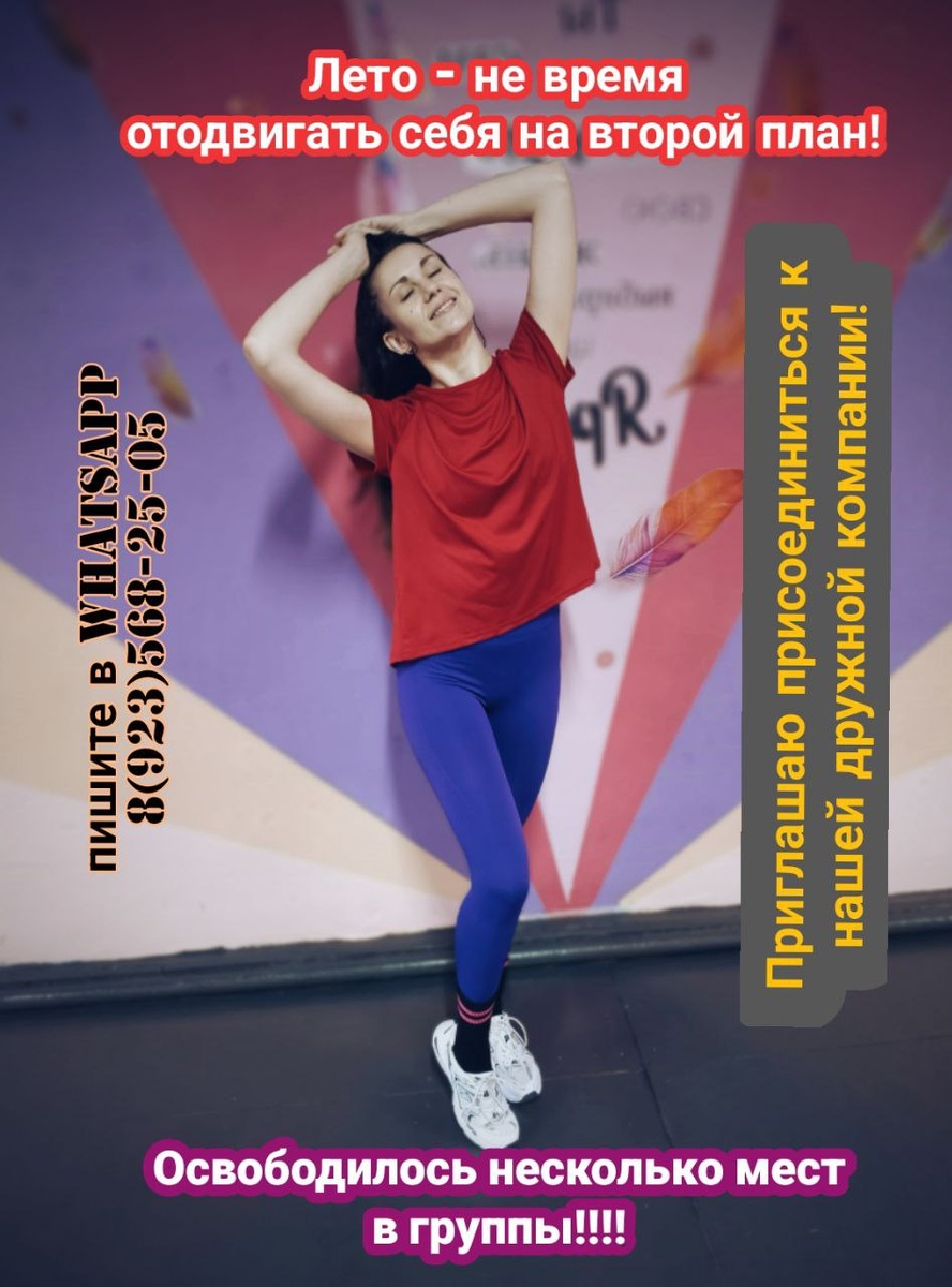 WhatsApp для связи и уточнения информации 💁 8(923) 568-25-05 Девушки, приглашаю Вас на эффективные и разнообразные тренировки в СК "Импульс" (стадион Олимп) Места есть в группу для новичков (более мягкая нагрузка) и в группу основную. Места ограничены 🚫 Я безумно влюблена в фитнес и в Вас, кому не все равно на себя 💜 Хватит откладывать свою жизнь на потом! Начни сейчас, чтобы потом не жалеть об упущенном времени ⌛ Ваше здоровье - Ваша ответственность!