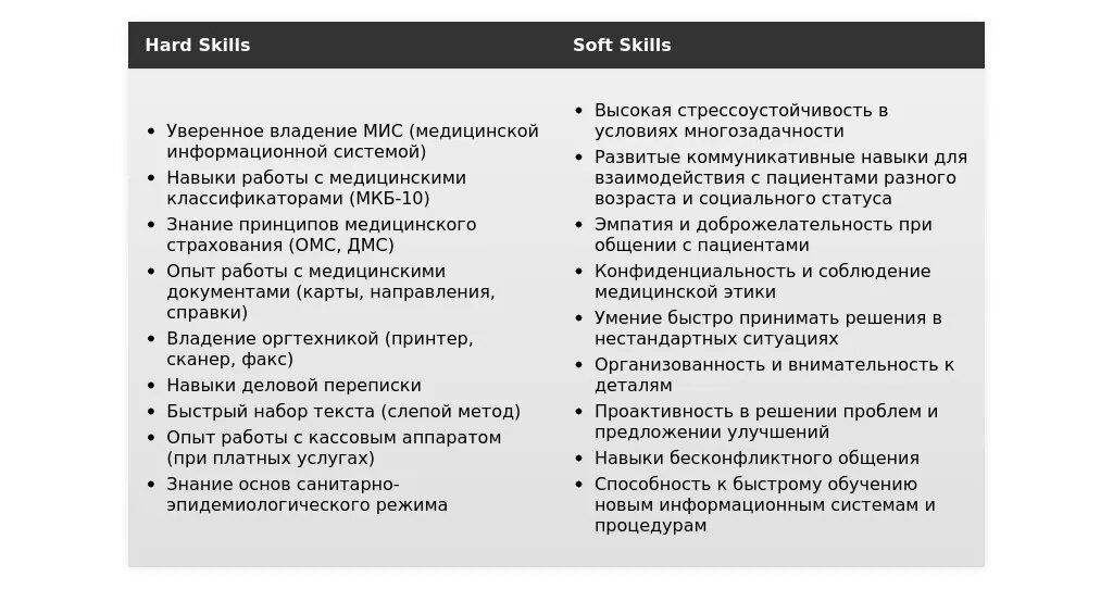 Ключевые навыки, релевантные для позиции медицинского регистратора.