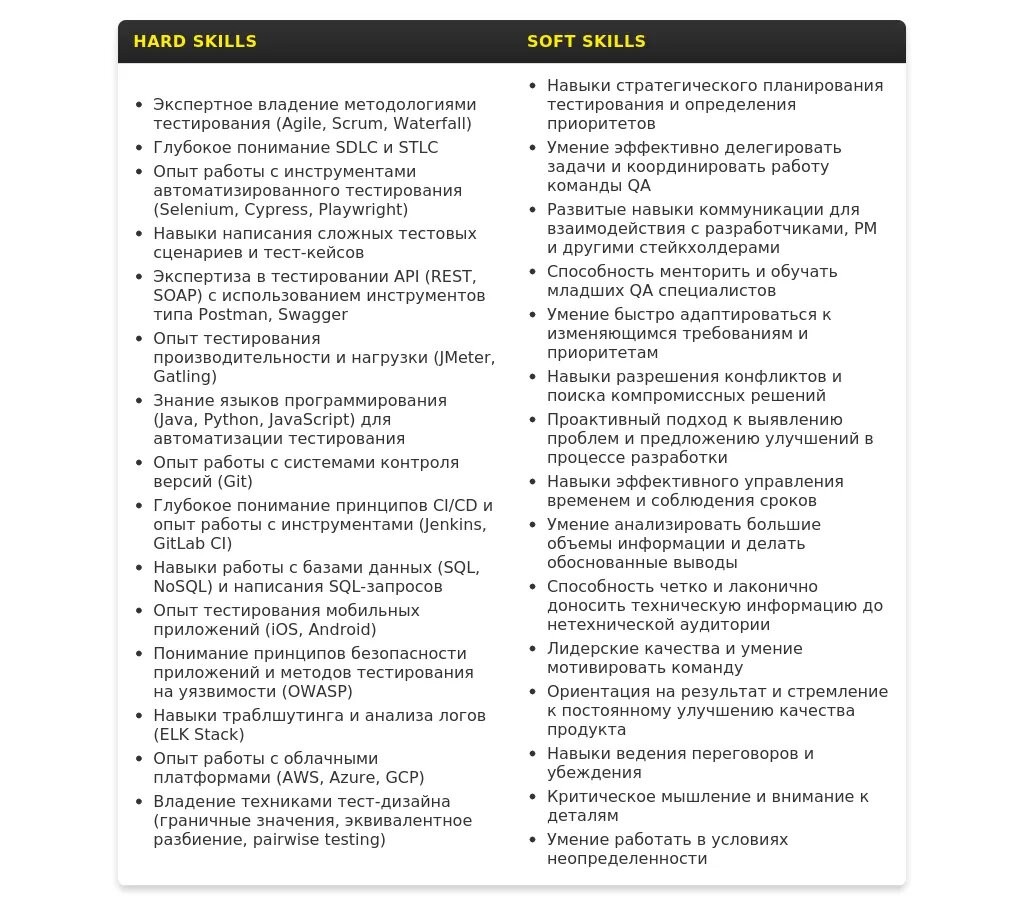 На этой странице мы предлагаем подробный пример резюме для senior QA specialist, который поможет понять, как грамотно представить свой опыт и навыки в соответствии с актуальными требованиями работодателей. Здесь вы найдете: