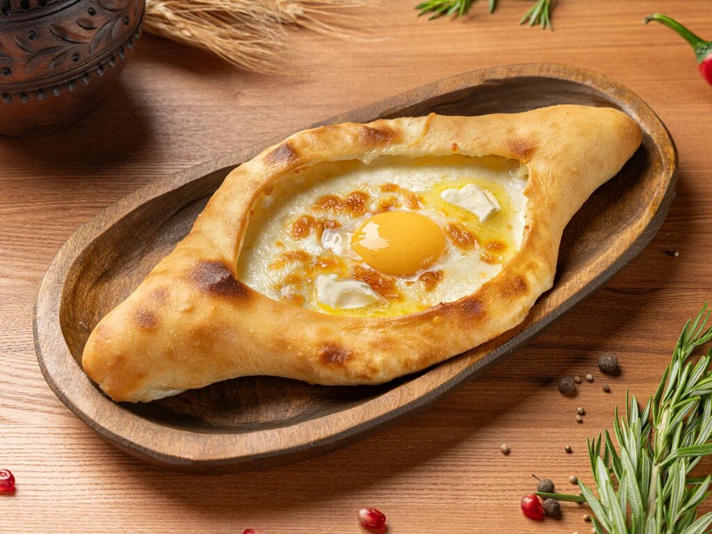 - Аджарули: лодочка из теста с сыром и яйцом.