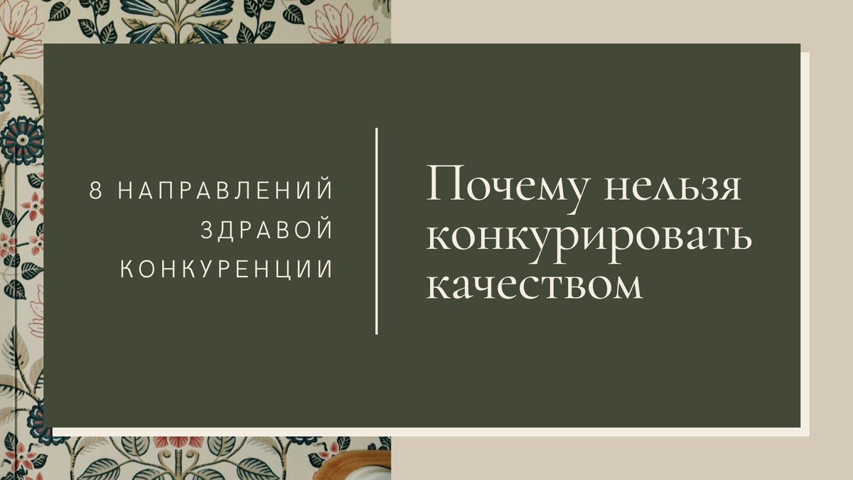 Если ваш товар или услуга некачественные, никакой маркетинг не спасёт. Да, можно вложиться в рекламу и продать один раз, но: - Не будет повторных покупок: клиенты не вернутся. - Не заработает сарафанного радио: никто не порекомендует плохой продукт. - Дороже привлекать новых: вместо естественного роста придётся постоянно тратиться на рекламу. Я не работаю с проектами, где халтурят по ключевым для клиента параметрам. Обмануть можно один раз, но бизнес на этом не построишь. Если вы говорите: «Мы конкурируем качеством», значит, у вас нет реального преимущества. Потому что у ваших конкурентов тоже качество на уровне. Но , чаще всего, у них есть что-то ещё: сервис, уникальные фишки, экосистема - то, чего нет у вас. То - за что выбирают их. Клиенты выбирают не только за «дёшево» или «хорошо». Важны удобство, эмоции, выгоды. Вот основные направления конкуренции: - Эксклюзивные технологии или патенты. - Новые функции, которых нет у конкурентов. - Креативный дизайн или нес
