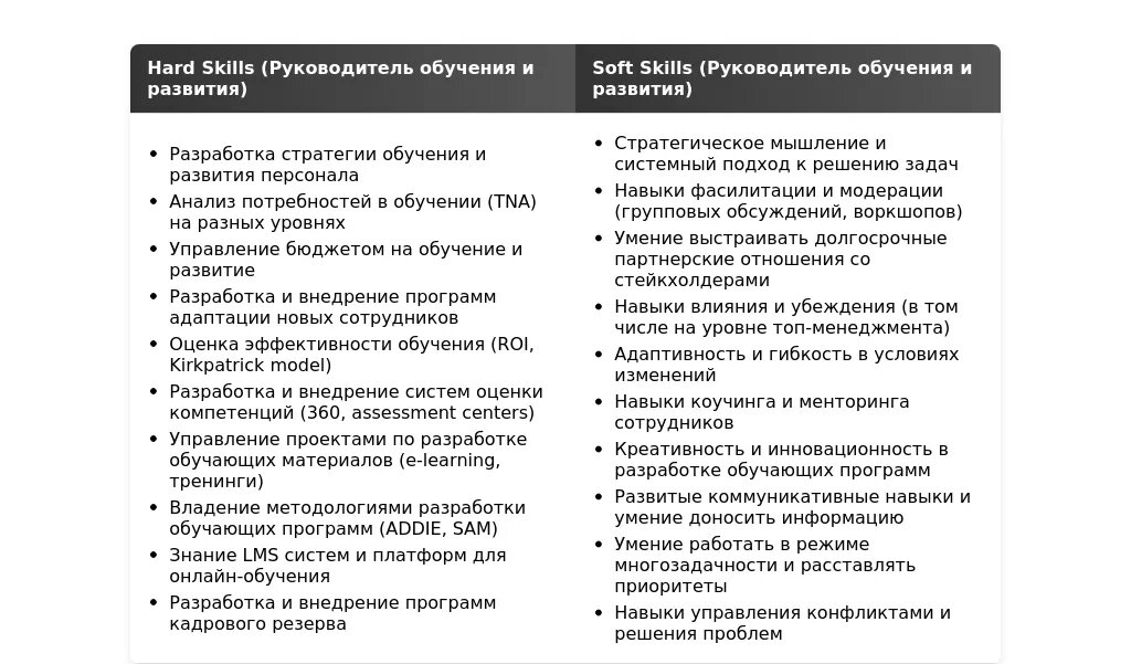 Адаптация раздела "Навыки" для Руководителя направления обучения и развития персонала