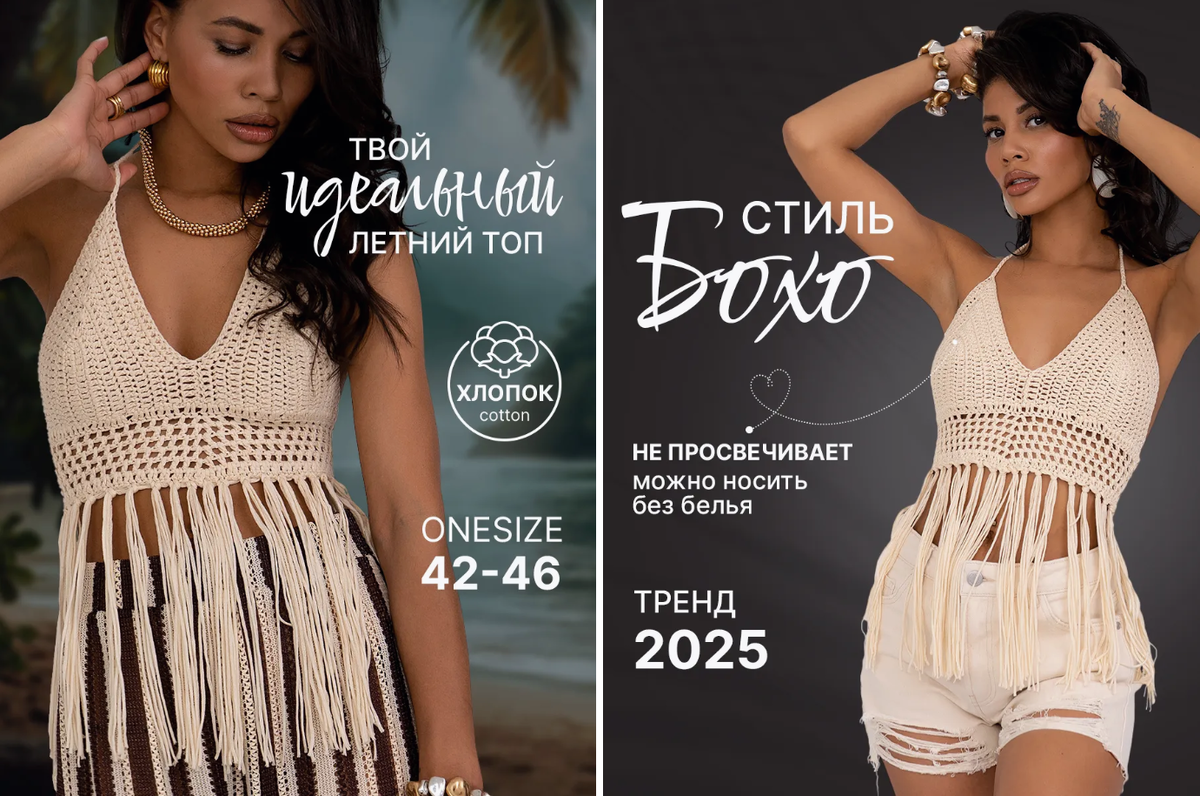 Такой топ — незаменимый элемент пляжного гардероба. Он добавляет образу лёгкости и шарма. Я в восторге!