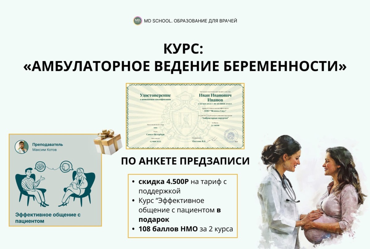 π ΠΡΠ΅ ΡΡΠ°ΠΏΡ Π°ΠΌΠ±ΡΠ»Π°ΡΠΎΡΠ½ΠΎΠ³ΠΎ Π²Π΅Π΄Π΅Π½ΠΈΡ Π±Π΅ΡΠ΅ΠΌΠ΅Π½Π½ΠΎΡΡΠΈ - ΠΎΡ ΡΠΈΠ·ΠΈΠΎΠ»ΠΎΠ³ΠΈΠΈ Π΄ΠΎ ΡΠ΅Π°Π±ΠΈΠ»ΠΈΡΠ°ΡΠΈΠΈ! π₯ ΠΡΡΡ ΠΎΡ MD.school - ΡΡΠΎ: - 8 Π½Π΅Π΄Π΅Π»Ρ ΠΊΠΎΠ½ΡΠ΅Π½ΡΡΠΈΡΠΎΠ²Π°Π½Π½ΠΎΠΉ ΠΏΡΠ°ΠΊΡΠΈΠΊΠΈ - 72 Π±Π°Π»Π»Π° ΠΠΠ ΠΈ Π΄ΠΈΠΏΠ»ΠΎΠΌ ΠΎ ΠΏΠΎΠ²ΡΡΠ΅Π½ΠΈΠΈ ΠΊΠ²Π°Π»ΠΈΡΠΈΠΊΠ°ΡΠΈΠΈ - Π΄Π΅ΡΡΡΠΊΠΈ Π°Π»Π³ΠΎΡΠΈΡΠΌΠΎΠ², ΠΊΠΎΡΠΎΡΡΠ΅ ΠΏΠΎΠΌΠΎΠ³ΡΡ Π²Π°ΠΌ ΡΠ²Π΅ΡΠ΅Π½Π½ΠΎ Π²Π΅ΡΡΠΈ Π»ΡΠ±ΡΡ ΠΏΠ°ΡΠΈΠ΅Π½ΡΠΊΡ Π§ΡΠΎ Π²Ρ ΠΏΠΎΠ»ΡΡΠΈΡΠ΅: *Π²Π΅Π΄Π΅Π½ΠΈΠ΅ ΠΏΠΎ ΡΡΠΈΠΌΠ΅ΡΡΡΠ°ΠΌ - ΡΠΈΠ·ΠΈΠΎΠ»ΠΎΠ³ΠΈΡ, ΠΆΠ°Π»ΠΎΠ±Ρ, Π½ΠΎΡΠΌΡ, ΡΠ΅ΠΊΠΎΠΌΠ΅Π½Π΄Π°ΡΠΈΠΈ *Π°Π½ΡΠ΅Π½Π°ΡΠ°Π»ΡΠ½Π°Ρ Π΄ΠΈΠ°Π³Π½ΠΎΡΡΠΈΠΊΠ° - ΠΏΡΠ΅Π½Π°ΡΠ°Π»ΡΠ½ΡΠΉ ΡΠΊΡΠΈΠ½ΠΈΠ½Π³, ΠΠ’Π, ΡΠ°ΡΡΡΠ΅ ΠΎΡΠΈΠ±ΠΊΠΈ *Π³ΡΡΠΏΠΏΡ ΡΠΈΡΠΊΠ° - ΠΠ¦Π, ΠΠ‘Π, ΠΠΠ§, ΠΠΠ, ΠΌΠ½ΠΎΠ³ΠΎΠΏΠ»ΠΎΠ΄ΠΈΠ΅ Π΄.Ρ *ΠΏΠΎΡΠ»Π΅ΡΠΎΠ΄ΠΎΠ²ΠΎΠΉ ΡΡΠ°ΠΏ - ΡΠ΅Π°Π±ΠΈΠ»ΠΈΡΠ°ΡΠΈΡ, Π»Π°ΠΊΡΠ°ΡΠΈΡ, Π±ΡΠ±ΠΈ-Π±Π»ΡΠ· *ΡΠ΅ΠΊ-Π»ΠΈΡΡΡ ΠΈ ΡΡ