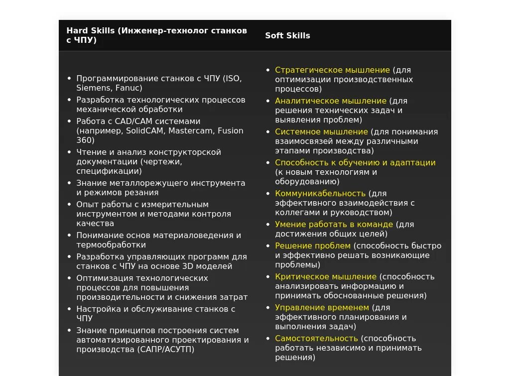 В этой статье вы найдете все необходимое, чтобы понять, как составить идеальное резюме инженера-технолога станков с ЧПУ, соответствующее требованиям работодателей. Мы подробно разбираем каждый раздел, предлагая