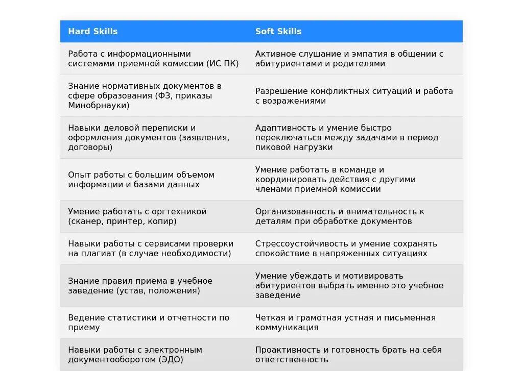 Наиболее релевантные навыки для позиции специалиста приемной комиссии.