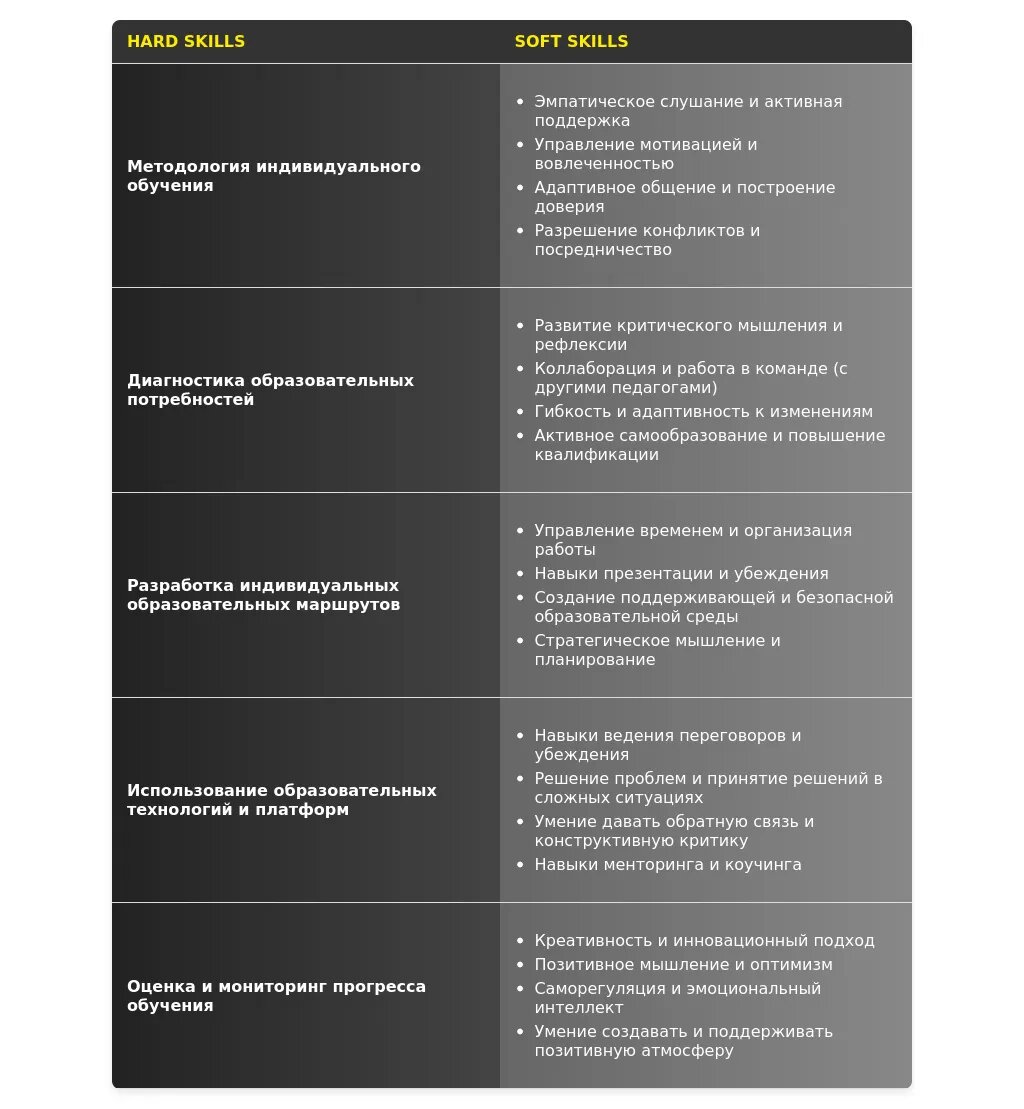 - Личные качества: Укажите качества, важные для тьютора (терпение, эмпатия, умение мотивировать).