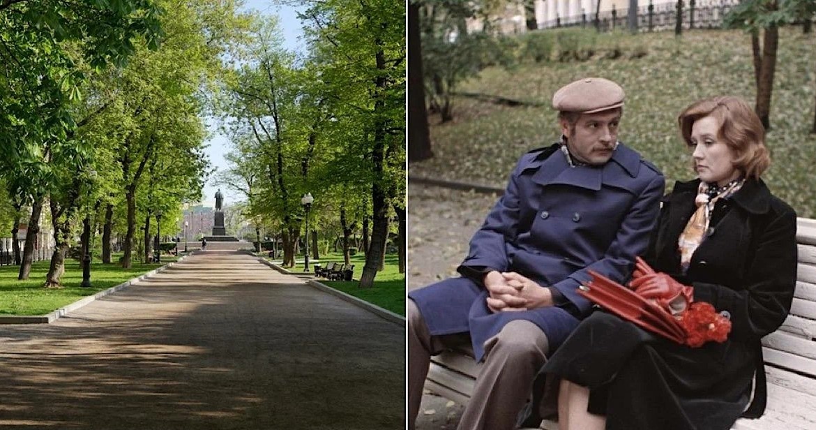 Вы можете пройти его самостоятельно, а можете присоединиться к нашей группе - "Пешая Москва". Любите гулять по Москве, но не с кем? Бесплатные экскурсии Пешей Москвы в теплой компании. Канал в Телеграм с анонсами и расписанием встреч. Маршрут - 4 км, 6000 шагов, примерно 2 часа неспешным шагом. 😏 И вот ссылка на маршрут для удобства. Выходим из метро Кропоткинская и двигаемся в сторону первой остановки. 1. Площадь Пречистенских ворот. Здесь снимали фильм "Сказка о потерянном времени". А также здесь открывается прекрасный вид на Храм Христа Спасителя и сквер на месте бывшего бассейна "Москва". 2. Далее двигаемся к Гоголевскому бульвару. И здесь снимали знаменитую сцену в фильме "Москва слезам не верит". 3. «Высокие, высокие отношения!» Помните, откуда это? Давайте посмотрим на места из комедии "Покровские ворота". Сивцев Вражек и Большой Афанасьевский переулок. Здесь сохранилась архитектура с советских времен. 4. Гагаринский переулок. И здесь снимались ключевые сцены экранизации "1