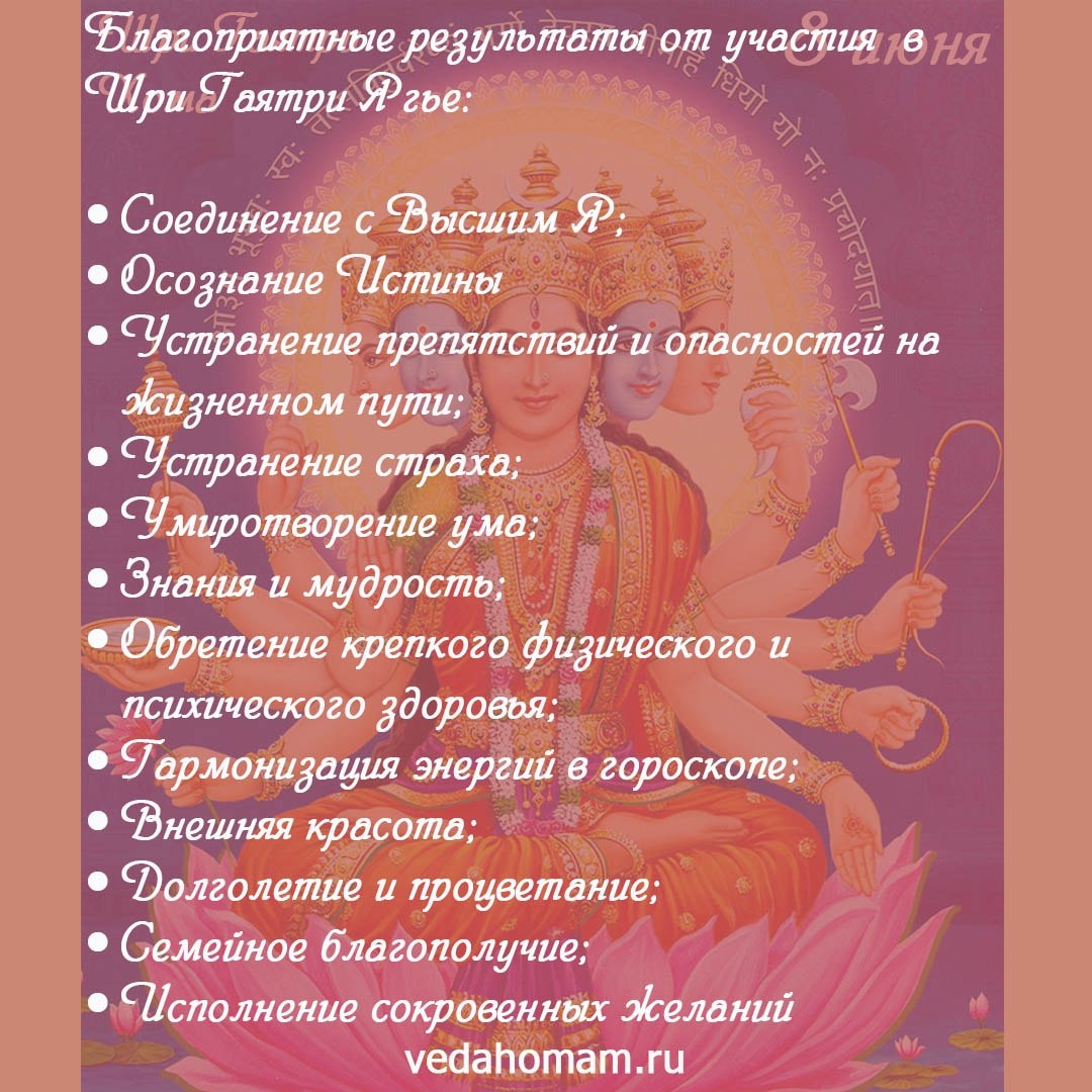 У нас есть время побыть со своим умонастроением перед ягьей, чтобы войти в процесс практик в осознании, как желаний и устремлений, так и страхов и переживаний! Страх. Очень сильное ощущение, тщательно скрываемое от самого себя. Именно страх останавливает наше дыхание, тело замирает, и прерывается поток Света внутри нас. Если же реакция на страх иная? Наоборот движение и действие, то тут тоже дыхание, и это буквально изнашивает наше тело. Деви Гаятри управляет пранами в нашем теле, помогая Жизнь находить наилучшее решение! Посмотрим на те намерения, которые связаны с ее божественным потоком Если почитать Деви Бхагавата Пурну, то Гаятри-мантра - наилучшее средство от всего не благого, и для привлечения всего благоприятного! Огонь ягьи многократно усиливает действие мантры! Просьбы участников мгновенно возносятся в Высшее Сознание! Оплата Вопрос в личку (Элена Шанти). Подробнее о Шри Гаятре ягье 6 июня